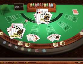 У пользователя есть три варианта для дальнейших действий. Можно отказаться от игры, и не тратить лишние фишки. Это целесообразно в случае плохих карт. Вторым вариантом будет удачный расклад, когда на руках оказывается хорошая комбинация. Нажатие на кнопку "Call" добавляет в банк еще одну ставку и происходит вскрытие карт. Если гемблер не уверен , он может докупить карту, которая изменит исход игры. Дополнительная карта оплачивается в размере начальной ставки.